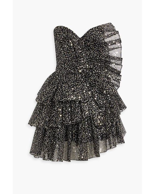 Rasario Strapless Ruffled Sequined Tulle Mini Dress In Black Lyst